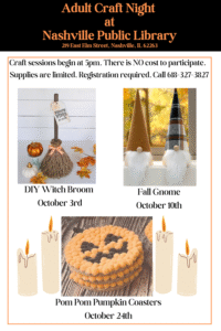 The Nashville Public Library is located at 219 E. Elm Street in Nashville, Illinois. This city library provides free services to all residents and those who own property within the city limits. Services are also made available to those not paying city property taxes through the purchase fee of a non-resident card.